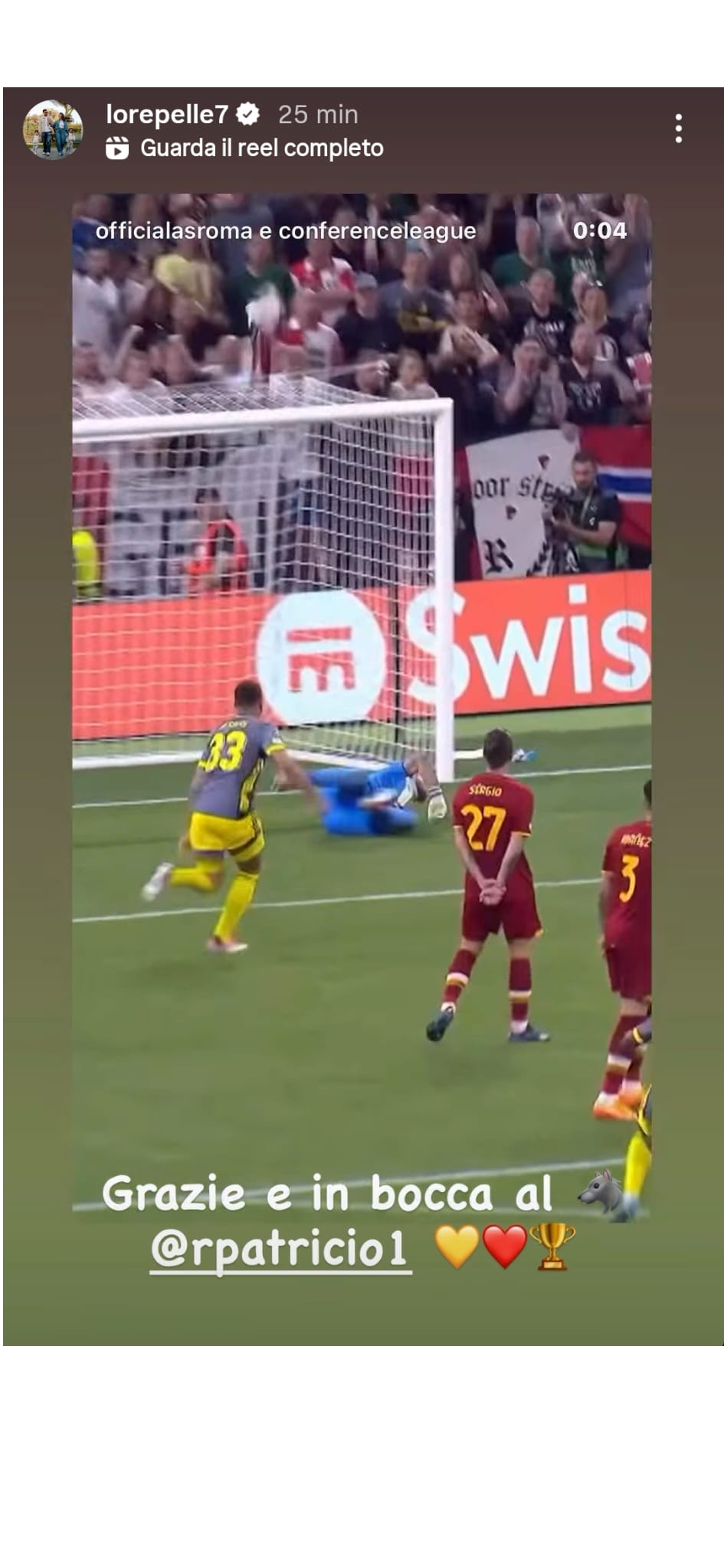 IeriRui Patricio ha annunciato ufficialmente il suo ritiro dal calcio giocato. E la Roma, sui suoi canali social, ha celebrato il portoghese condividendo un video delle sue migliori parate in giallorosso, con particolare riferimento alla finale vinta di Conference League in cui fu protagonista. "Quella Coppa è per sempre, in bocca al lupo per il futuro Rui", ha scritto il club. Anche Gianluca Mancini ha condiviso su Instagram il post della Roma, con scritto:"Grazie Rui".