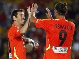 奥斯瓦尔多在自己的Twitter上祝贺梅西打破穆勒的年度进球数纪录,今年夏天奥斯瓦尔多曾和梅西一起在阿根廷国内踢过友谊赛
