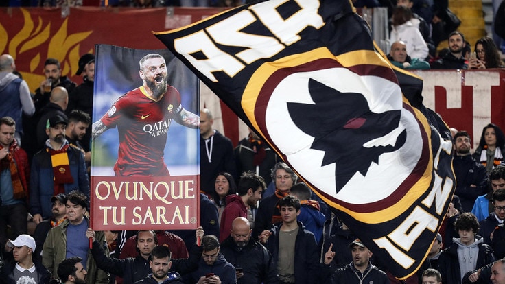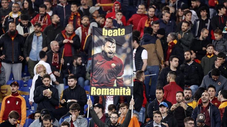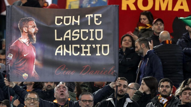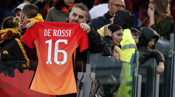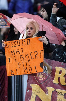 本场比赛罗马球员所穿的特制球衣,袖子上面印有德罗西的画像