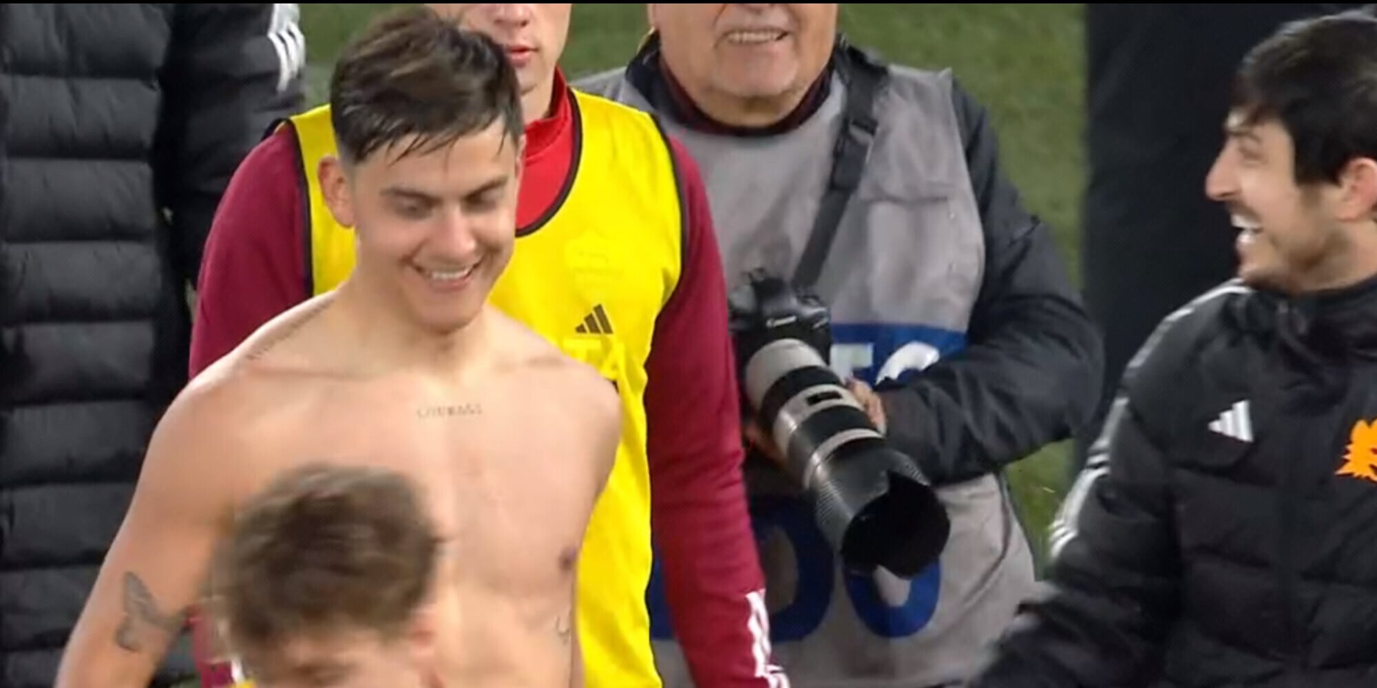 Come documentato dalle telecamere di DAZN, Azmoun ha fatto segno a Dybala di dargli il pallone. La Joya, spiazzata dal simpatico tentativo di accaparrarsi il "trofeo", ha fatto finta di consegnare il pallone ad Azmoun prima di ritirarlo bruscamente e di difenderlo tenendolo stretto contro il suo torso nudo. Risate e tanta serenità grazie al successo. Un'altra serata da ricordare dopo quella in Europa League contro il Feyenoord.
