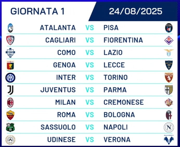 Martedì 2 dicembre 2025: Juventus-Udinese (ore 21)